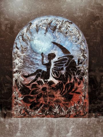 resin, mica and acrylic panel. Can be backlit ( +10 euros)
